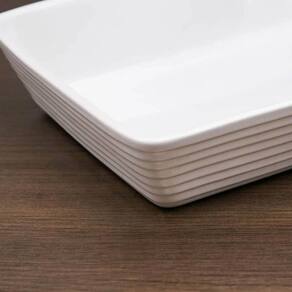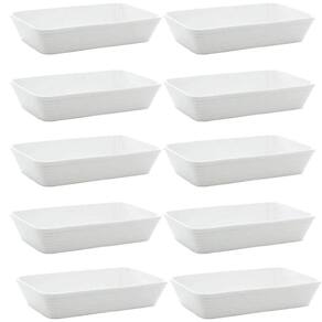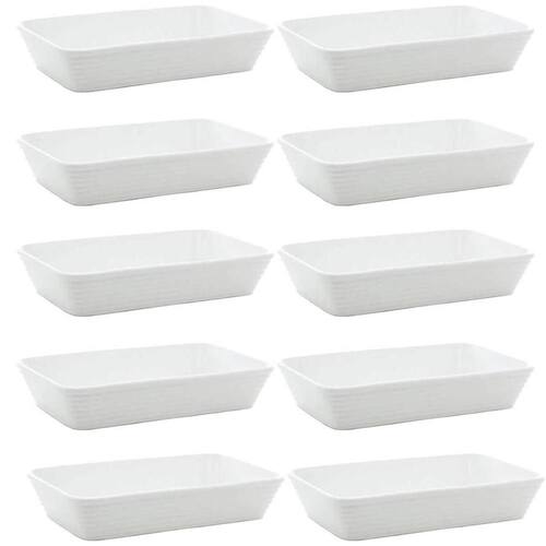 Kit 10 Travessas de Porcelana Lines para Restaurante Buffet Retangular Servir Branca.