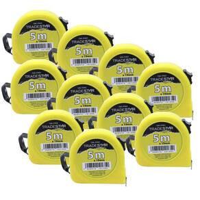 Trena de medição em aço pintado, com 5 metros de comprimento e 19 mm de largura. Trena com medidas em centímetros e polegadas. Corpo em ABS Amarelo Correia para transporte da fita