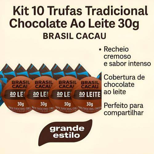 Kit 10 Trufas Tradicional Chocolate Ao Leite 30g Brasil Cacau - Sabor Clássico em Grande Estilo Mais sabor, mais prazer e muito mais momentos especiais O Kit com 10 Trufas Tradicional Brasil Cacau é a escolha certa para quem ama chocolate ao leite cremoso e não abre mão da qualidade. Cada trufa traz o recheio macio e marcante, envolvido por uma cobertura generosa de chocolate ao leite, proporcionando uma experiência irresistível a cada mordida. Destaques do Kit: 10 unidades de 30g cada total 300g Recheio cremoso e sabor intenso Cobertura de chocolate ao leite irresistível Marca Brasil Cacau - tradição em chocolates sofisticados Ideal para: Presentear com impacto e generosidade Adoçar confraternizações e eventos Garantir de felicidade em forma de chocolate Garanta já o seu kit e desfrute do clássico em dose ainda mais especial