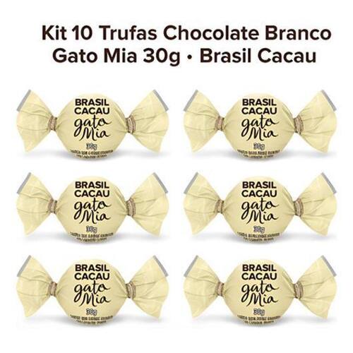 Kit 10 Trufas Chocolate Branco Gato Mia 30g - Brasil Cacau