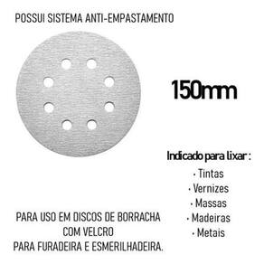 Kit 10 unidades disco lixa tiras aderentes branco 150mm grão 120 starfer apresenta técnica anti-empastamento. Disco de lixa abrasivo com pluma para uso em discos de borracha; com tiras aderentes para furaderia e esmerilhadeira; indicado para lixar massa, tintas e vernizes, metais e maderia. - diâmetro = 150mm; - rotação máxima = 8500rpm; - grão 120. - embalagem: cartela plastica com 10 unidades - composição: resina, óxido de alumínio, papel e pluma marca: starfer importante garantia de 3 meses contra defeitos de fabricação. - alta qualidade. - boa durabilidade. - garantia 90 dias - postagem agilizada ------------------------------------------------------------------------------------------------------------- sobre nossa empresa: empresa presente no ramo de refrigeração e ferramentas há mais de 10 anos. Possuímos clientes em todo o território nacional, contamos com colaboradores treinados e especialistas em suas áreas. Nossos produtos são certificados e contam com garantia, tudo isso para assegurar os nossos clientes na hora da compra. Marca: Benter