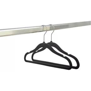 Kit 10 Unidades Cabide Infantil De Veludo 30cm Preto Kit 10 Unidades Cabide Infantil de Veludo 30cm Preto O Cabide De Veludo infantil Ultrafino Antideslizante Slim é feito de plástico revestido de veludo e gancho de metal, leve, porém muito resistente, ele é ideal para qualquer tipo de peça principalmente para roupas feito de tecidos finos e fáceis de desfiar, com um design simples e bem funcional. Cabides são a melhor maneira para organizar lojas, quartos ou closets, perfeito para quem gosta de qualidade e praticidade. - Feito especialmente para roupas mais delicadas.
