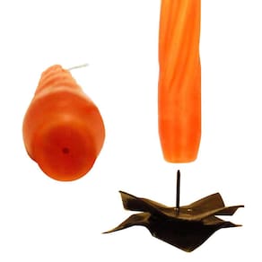 Kit com 10 velas castiçal espiral laranjaMedidas a vela:Altura: 20 cm diâmetro maior da base: 2,2 cm diâmetro menor da base: 1,5 cmProdutos da marca Velitas.Somos uma fábrica, de velas e ferros decorativos, desde de 1984 no mercado.Velas:Velas de parafina pura Petrobras, contêm apenas corante nas velas coloridas.As velas possuem furo para fixação em castiçais.O castiçal não faz parte do produto, ele é meramente ilustrativo.A vela pura garante uma maior durabilidade, não produz fumaça preta que possa sujar a parede ou criar um aspecto desagradável, e também possui um cheiro suave e natural da parafina. Nossas velas no copinho foram projetadas para fácil reposição já que são removíveis; o produto acompanha indicações de uso para facilitar a limpeza do copo após a utilização. Duração da vela:Aproximadamente 5 horas, o tempo pode variar de acordo com a temperatura ambiente.Imagens meramente ilustrativas, o produto pode apresentar pequenas variações por se tratar de um produto artesanal. Aviso de segurança:Acenda as velas longe de produtos inflamáveis, de corrente de ar e em recipiente protetor.Não deixe velas acesas desacompanhadas. Marca: Velitas (r)