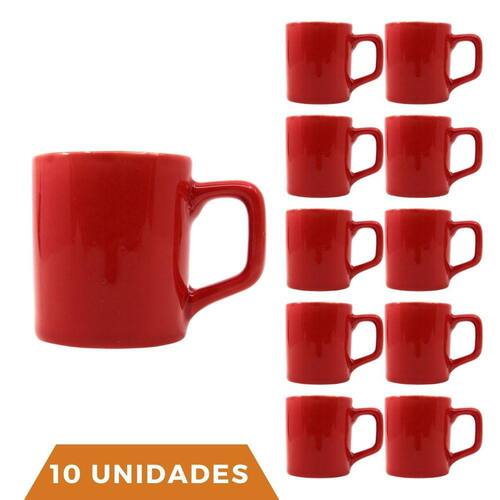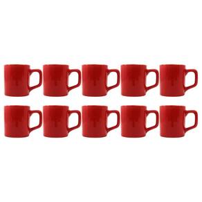 kit 10 Xícaras Café Colors Vermelha 80mL Cerâmica Mesa Posta