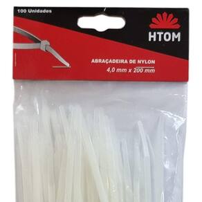 Kit 100 Abraçadeiras de Nylon Branca 4mm x 200mm abraçadeira HTOM - Marca: HTOM - Referência: HTOM-42534 - Comprimento: 200mm - Largura: 4mm - Qualidade - Cor: Branca - Embalagem com 100 Unidades - Fabricada em nylon resistente. - Indicado para o uso doméstico, comercial e industrial. - Produto de alta qualidade e durabilidade, um material essencial que não pode faltar no seu local de trabalho - Utilizado para várias funções, prender cabos elétricos, embalagens, mangueiras, fios, componentes e diversos outros objetos às mais diversificadas superfícies - Ideal para a fixação diversa em cabos elétricos chicotes , veículos, bicicletas, motor, embalagens, etc - Produzidas em Nylon 6.6 que proporciona maior resistência a tração - Proteção UV que garante maior vida útil - : 90 dias