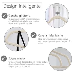 Kit 100 cabide bege veludo slim antideslizante ultra fino Kit 100 cabide veludo slim anti deslizante ultra fino