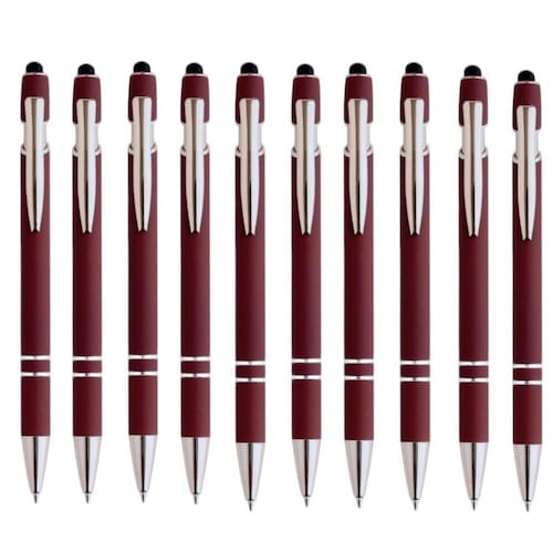 Caneta touch esferográfica 2 em 1 com ponta metálica touchscreen e acabamento em borracha. Acionamento por clique e carga esferográfica azul 1.0mm. Ideal para uso em telas sensíveis de smartphones e tablets.Vendido e entregue por Olist Store