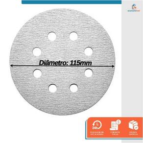 Características técnicas: Material: Resina, óxido de alumínio, papel e pluma Medidas: 115mm Quantidade de furos: 8 Limite máximo: 12.220rpm - 80m/s Grão: 1000 Quantidade: 100 unidades Marca: Starfer Ref.: 4000447