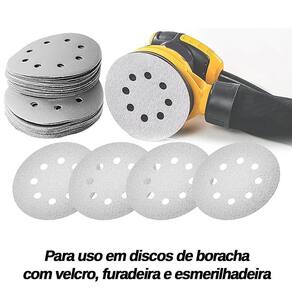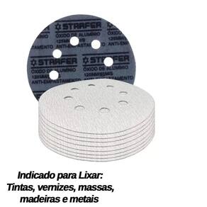 CARACTERÍSTICAS TÉCNICAS: Material: Resina, óxido de alumínio, papel e pluma Medidas: 125mm 5 Pol. Quantidade de furos: 8 Limite máxima: 12220rpm, 80m/s Grão: 800 Quantidade: 100 unidades Marca: Starfer Ref.: 4003561 Marca: Não Informado