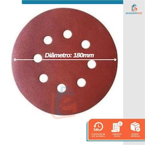 Kit 100 Disco de Lixa Fecho Aderente Vermelho Pluma 8 Furos 180mm Grão 180 - Starfer