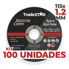 kit com 100 Discos de Corte Metal 4.1/2" 115 x 1,2 mm