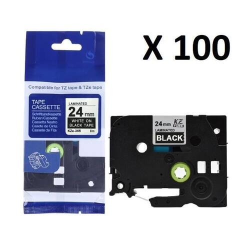 Kit 100 fitas compatível brother tze-355 etiqueta na cor preta com letras na cor branca