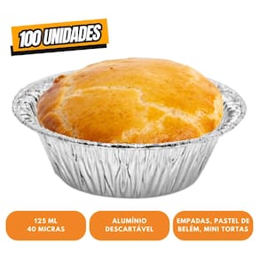 Forma descartável de alumínio para empadas, embalagem com 100 unidades. Própria para empadas, pastel de belém, bolinhos, mini tortas, quindim, quiches e quitutes diversos.