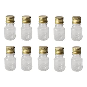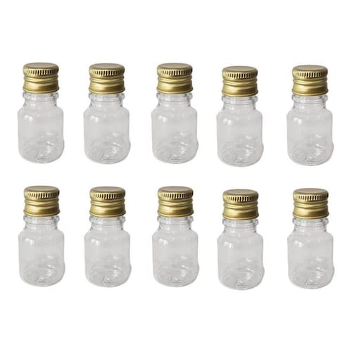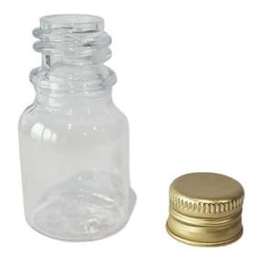 Conteúdo: 250 Frascos Transparentes com tampa Metalizada Dourada Capacidade/volume: 10ML Altura do Frasco: 5mm. Diâmetro do bocal: 18mm. Ean: 7795835330318