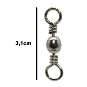 Kit 100 Girador Distorcedor De Pesca N-1/0 Tamanho 3,1Cm Os giradores, também conhecidos como distorcedores, tem uma importante função de amenizar as torções da linha causadas principalmente pelos molinetes na hora do arremesso e na fase de recolhimento. Na pesca com carretilhas essa torção é causada geralmente não pela carretilha mas pela isca. Pode ser o rodopio no recolhimento de uma isca artificial ou uma isca viva fazendo movimento circular para tentar se despender do anzol. De modo geral, os giradores são indicados para todos os tipos de pescarias, desde a mais leve até a mais pesada. Tamanho 1/0 Medida 3,1cm Embalagem com 100 unidades Acabamento em Nickel Marca: Não Informado