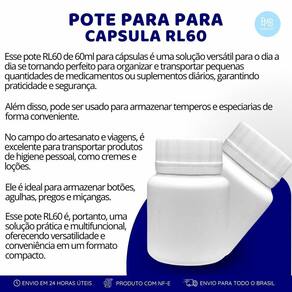 Conheça o pote para comprimidos de 60ml da Embanet Embalagem, feito em Polietileno de Alta Densidade, ideal para remédios e armazenamento de matéria-prima. A embalagem branca oferece proteção para produtos sensíveis à luz. Nossas tampas de 40 mm são reforçadas com lacre inviolável que indica quando foi aberto. Itens Inclusos: 100 potes de 60ml branco 100 tampas rosca inviolável Especificações: Altura: 63mm Diâmetro: 49mm Capacidade: 60ml Peso: 10g Material: Polietileno de Alta Densidade Na Embanet Embalagem, estamos comprometidos em oferecer produtos de qualidade superior que atendam às suas necessidades e expectativas. Conte conosco para garantir qualidade e satisfação em todas as suas operações de embalagem Marca: Não Informado Ean: 7794075156139