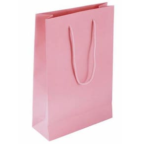 100 Sacolas De Papel Rosa Bebê. Sacolas de papel para lembrancinha de festa, sacolinha surpresa, transporte de chocolates, perfumes, roupas, papelaria, brinquedos e presentes em geral. 30 unidades. Sacolinhas produzidas em papel 90 gramas.Já vem montada, pronta para uso, com alças de nylon e fundo reforçado em papel cartão 190 gramas, ficam super resistentes. Medidas 25cm altura x 17cm largura x 6cm profundidade lateral . Não personalizamos.