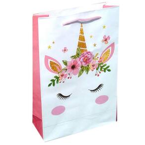 100 Sacolas De Papel Unicórnio. Sacolas de papel para lembrancinha de festa, sacolinha surpresa, transporte de chocolates, perfumes, roupas, papelaria, brinquedos e presentes em geral. 100 unidades. Sacolinhas produzidas em papel 90 gramas. Já vem montada, pronta para uso, com alças de nylon e fundo reforçado em papel cartão 190 gramas, ficam super resistentes. Medidas 25cm altura x 17cm largura x 6cm profundidade lateral . Não personalizamos. Marca: Não Informado Ean: 7895099602883