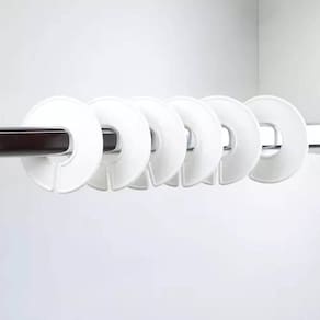 O kit de separador e organizador de cabides feito em plástico polipropileno e poliestireno é utilizado em lojas, estabelecimentos de varejo e boutiques para separar e identificar peças de vestuário de vários tamanhos, cores, estilos ou marcas diferentes, mantendo as roupas organizadas, práticas e visíveis de ser achadas em cabides nas araras. O divisor de cabide ajuda a dividir e agrupar roupas de maneira mais prática e eficiente.