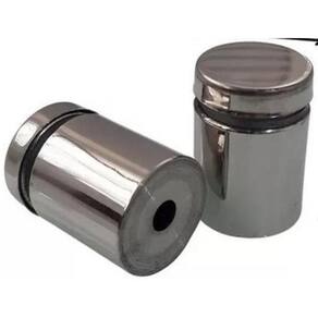 Altura: 2,5cm 25mm . Diâmetro: 1,9cm 19mm . Espessura compatível: vidro, madeira, acrílico e outros, de 10mm até 12mm. Recomendado furo de 12mm a 14mm no vidro, acrílico ou outros materiais. Parafuso de ajuste com 20mm para um encaixe preciso e seguro. Acompanha 2 arruelas plásticas transparentes para garantir um encaixe perfeito e proteger o material.