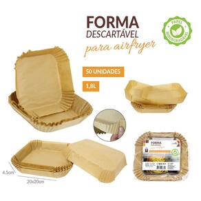 Kit com 1000 Formas de Papel Descartável para Airfryer - Praticidade e Limpeza Impecável na Sua Cozinha!Descomplique suas refeições com o Kit 1000 Formas de Papel Descartável para Airfryer . Perfeito para quem busca otimizar o tempo e manter a Airfryer sempre limpa, esse kit traz praticidade e qualidade, garantindo uma experiência culinária sem sujeira e sem grudar.Benefícios IncríveisAdeus à Limpeza Pesada : Com as formas adicionais, você não precisa mais perder tempo limpando o cesto da Airfryer. Ao finalizar, é só descartar e sua Airfryer está pronta para o próximo uso.Cozimento Saudável e Sem Gordura : Dispensa o uso de óleo, mantendo seus alimentos mais leves e crocantes. O papel antiaderente de alta qualidade evita que os alimentos grude, preservando sabor e textura.Versatilidade e Compatibilidade : Compatível com diversos modelos de Airfryer, forno elétrico e micro-ondas, estas formas permitem cozinhar uma ampla variedade de receitas de batatas fritas a pequenos bolos.Características do ProdutoTamanho Universal (24x20x4,5 cm) : Formato quadrado com medidas ideais para acomodar diferentes tipos de alimentos e distribuir o calor de maneira uniforme.Material Biodegradável e Resistente : Fabricados em papel de qualidade alimentar, suportam temperaturas de até 200C e são seguros para sua saúde e para o meio ambiente.Quantidade e Praticidade : O kit vem com 1000 formas fornecidas, garantindo um estoque consistente e perfeito para o dia a dia agitado.Por que escolher as formas de papel para Airfryer?As formas de papel envolvem oferecer uma solução prática e eficiente para quem quer cozinhar sem se preocupar com a limpeza posterior. Feitas para resistir ao calor e não alterar o sabor dos alimentos, elas tornam cada preparo mais rápido e sem sujeira.Atenção: Nunca pré-aqueça a Airfryer com o papel sem alimentos, pois isso pode causar queimaduras no papel.Quantidade : 1000 unidades (20 pacotes de 50).Dimensões : Diâmetro superior 24 cm, diâmetro do fundo 20 cm, altura 4,5 cm.Compatibilidade : Airfryer, forno elétrico e micro-ondas.Não perca a oportunidade de transformar a rotina da sua cozinha! Adquira agora o Kit 1000 Formas de Papel Descartável para Airfryer e experimente uma nova maneira de cozinhar com menos esforço e mais sabor.