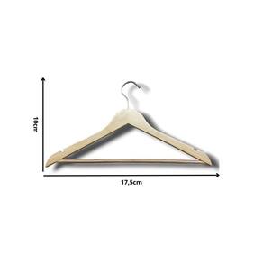O Kit ;100 Cabides de Madeira com Barra, Gancho e Presilha Cromado oferece uma solução clássica e versátil para a organização de roupas. Com medidas de 10 cm de altura e 17,5 cm de largura, esses cabides são ideais para diversas peças. Fabricados em madeira resistente, com gancho e presilha cromados, proporcionam durabilidade e elegância. Adquira este kit para uma exposição organizada e sofisticada de vestuário em sua loja.