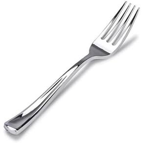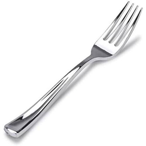 Kit 104 Garfos 18,5Cm Descartáveis De Luxo Em Plástico Prata