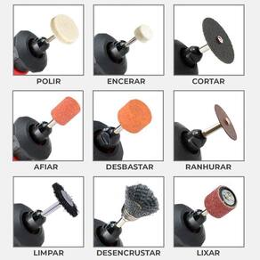 Kit com 105 Acessórios para Micro Retífica Completo Dremax. Com 105 peças para lixar, polir, cortar, esmerilhar, limpar, gravar, desbastar, furar, etc.