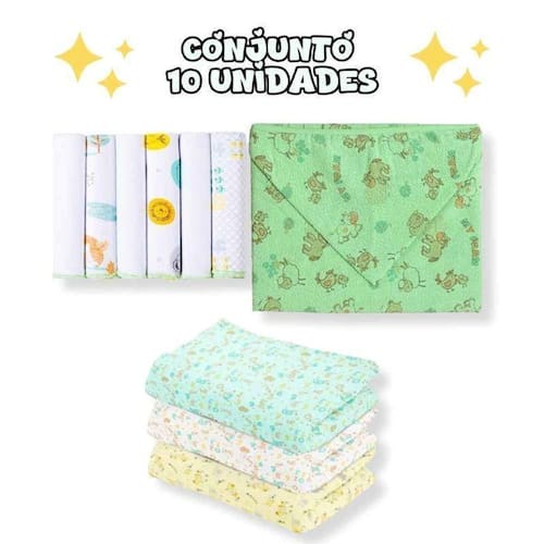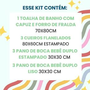 Kit enxoval bebê 10 peças 3 cueiro bebê flanelado + 6 pano de boca 3 estampados + 3 lisos + 1 toalha de banho com capuz e forro de fralda 70x80cm 100% algodão Especificações do kit / conjunto Total de produtos: 10 peças Contém 1 toalha de banho com capuz e forro de fralda 70x80cm Contém 3 cueiros flanelados 80x60cm estampado Contém 6 panos de boca bebê duplo estampado 30x30 cm 3 estampados + 3 liso Principais características: Composição: Kit completo 100% algodão e com toque flanelado Idade: a partir do primeiro dia de vida Estampas: neutro estampas Extra absorvente Tecido duplo ou seja, existe duas camadas para maior durabilidade Cuidados Leia atentamente a descrição Seguir as recomendações da etiqueta do produto para maior durabilidade do produto Lavar a mão ou lavar suavemente em 30 graus. Não alvejar Não centrifugar Secagem em varal, na horizontal e na sombra Passar em temperatura média de 150 Não limpar a seco Não remover manchas com solventes Dúvidas e informações Nos preocupamos muito com a satisfação dos nossos clientes, e estamos sempre a disposição para quaisquer dúvidas ou informações entrando em contato. Com muito carinho agradecemos a preferência, e desejamos que goste do pedido Obrigada Marca: Não Informado Ean: 7896105942412