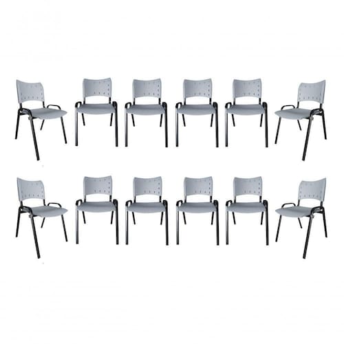 Kit 11 Cadeiras Iso Para Escritório Comércio Cinza Base Preta