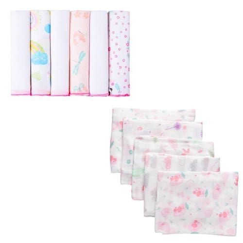 5 fraldas de pano 60x60 cm Caricia Baby estampadas 6 paninhos de boca 30x30 cm 3 estampados e 3 lisos Principais Caracteristicas