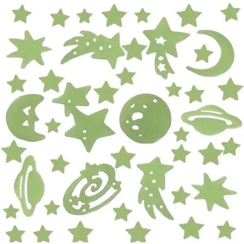 Kit 112 Planetas, Estrelas Fluorescentes Brilha Escuro Teto - 100 x 70 cm