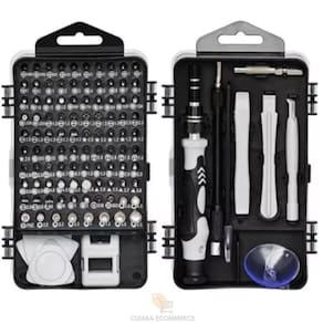 Tenha em mãos o Kit de Ferramentas com 115 Chaves de Precisão, ideal para reparar seus celulares, notebooks, tablets e outros dispositivos eletrônicos! Com este kit completo e versátil, você pode economizar dinheiro e tempo ao fazer os próprios reparos em casa.