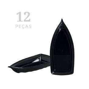 Kit 12 Barca Barco para Açaí Sushi Sashimi Bandeja 22 Preto