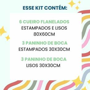 Kit 12 Peças de Enxoval de Bebê - 6 Cueiro Bebê Flanelados Estampados ou Lisos + 6 Paninho de boca 100% algodão Sobre o Cueiro: É um cueiro com tecido flanelado leve e confortável, que proporciona mais segurança aos pequenos, além de prevenir arranhões e sustos dos movimentos involuntários dos bebês, uma estrutura bem melhor do que os cueiros tradicionais. Os braços do bebê deverão ficar por dentro do cueiro. Certifique-se que esteja confortável para o bebê. Seu bebê vai ficar mais confortável embrulhado no cueiro, pois é macio e aconchegante que vai deixar o bebê mais tranquilo. Sobre o Paninho de Boca: O Paninho de Boca da Karinho, feita por Dugu Atacadista, é um produto muito prático, composto de 100% algodão extra macio e absorvente. Eles são item indispensável no enxoval do bebê, são a todo momento, seja para limpar a boquinha, limpar a mãozinha, servir de paninho para a mamãe pôr no ombro na hora de arrotar, entre outras inúmeras utilizações. O seu diferencial é o tamanho de 30cm x 30cm, o que o torna perfeito e ideal para levar em passeios com o bebê, além do mais, conta com 6 paninhos de boca, facilitando muito o dia-a-dia da mamãe Principais Características do Cueiro: Fabricados em 100% algodão; Neutro Estampas ; Flanelado. 100% Brasileiro Principais Características do Paninho de boca: Feito com 100% de algodão: pensado especialmente para a pele delicada e sensível do bebê. Cores e Estampas delicadas e harmoniosas. Perfeito para completar o enxoval 6 paninho de boca 3 estampado e 3 liso Medidas: 30cm x 30cm Extra Macio e Absorvente Tamanhos: Cueiro: Altura: 80cm Largura: 60cm Paninho de Boca: Altura: 30cm Largura: 30cm Cuidados: Passar somente pelo avesso; Lavar com cores similares; Não secar na secadora; Não usar alvejante. Para maior durabilidade, por favor siga as instruções do fabricante na etiqueta do produto. DÚVIDAS e INFORMAÇÕES Os produtos são embalados com muito cuidado para que você receba seu pedido em perfeito estado. Se mesmo assim sofrer algum dano durante o transporte, não se preocupe Estamos aqui para resolver É só entrar em contato conosco ; Com muito carinho agradecemos a preferência, e desejamos que goste do pedido Obrigada Marca: Não Informado