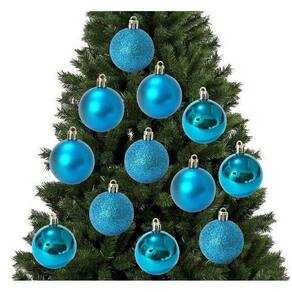 -12 Bolas Natal Mista Glitter, Fosca, Lisa Azul Turquesa 8cm - Master Christmas