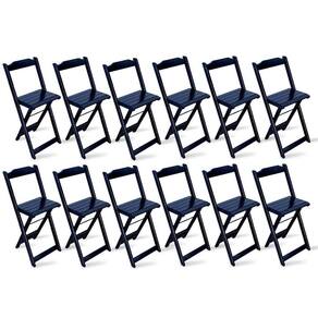 Kit 12 Cadeiras Bistrô Dobrável Madeira Preta - Cor: Preto