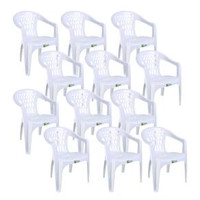 Marca: Duoplastic Modelo: Bella Quantidade de pecas: 12 cadeiras Material: Plastico injetado Tipo: Cadeira com braco Empilhavel: Sim Peso suportado por cadeira: Ate 120 kg Uso: Interno e externo