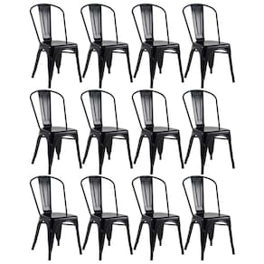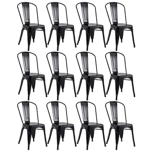 Kit 12 Cadeiras Iron Tolix - Preto Cadeira modelo Tolix: Material: Aço carbono (Pintura epoxi eletrostática) - Altura do encosto: 84 cm - Altura do assento: 44 cm - Largura do assento: 36 cm - Profundidade do assento: 36 cm - Distância entre os pés: 42 cm - Peso suportado: 130 kg.