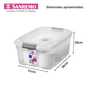Kit 12 Caixas Organizadora Multiuso 20 litros Sanremo Kit 12 Caixas Organizadora Multiuso 20 litros Sanremo A Caixa Organizadora Multiuso 20 litros Sanremo é a solução perfeita para quem busca praticidade e eficiência na organização dos espaços. Com um design moderno e funcional, esta caixa organizadora é ideal para armazenar uma variedade de itens, mantendo tudo em ordem e facilmente acessível. Características Principais: Capacidade Generosa: Com uma capacidade de 20 litros, a caixa oferece amplo espaço para armazenar diversos tipos de objetos, desde mantimentos e material de limpeza e higiene, a brinquedos pequenos e até ferramentas e materiais de escritório. Material Durável: Fabricada em polipropileno de alta qualidade, a caixa é resistente e durável, suportando o uso diário e protegendo os itens armazenados. Transparência Prática: A caixa possui um corpo transparente, permitindo visualizar o conteúdo sem a necessidade de abrir a tampa, facilitando a identificação rápida dos itens. Tampa Segura: A tampa possui um encaixe perfeito e firme, garantindo que os itens fiquem protegidos contra poeira e umidade. Design Empilhável: Projetada para ser empilhável, a caixa permite otimizar o espaço de armazenamento, mantendo tudo organizado e economizando espaço. Alças Integradas: As alças laterais facilitam o transporte, mesmo quando a caixa está cheia, garantindo praticidade no manuseio. Benefícios Adicionais: Versatilidade de Uso: Ideal para uso em casa, no escritório, em garagens ou áreas de serviço, a caixa organizadora é versátil e atende a diversas necessidades de organização. Fácil de Limpar: O material de polipropileno é fácil de limpar, permitindo que a caixa mantenha sua aparência nova e higiênica por mais tempo. Estilo Moderno: Com um design clean e moderno, a caixa se integra bem em qualquer ambiente, seja ele residencial ou comercial. Ideal Para: Organização Residencial: Perfeita para organizar brinquedos, utensílios domésticos e muito mais. Uso em Escritórios: Ideal para armazenar materiais de escritório, documentos e outros suprimentos, mantendo o ambiente de trabalho ordenado. Armazenamento em Garagens e Oficinas: Excelente para guardar ferramentas, equipamentos e peças, facilitando o acesso e a organização. Especificações Técnicas: Dimensões da unidade: 49cm de largura x 20cm de altura x 31cm de profundidade Peso: 600g Capacidade: 20 litros Material: polipropileno de alta qualidade Cor: transparente : 30 dias A Caixa Organizadora Multiuso 20 litros Sanremo é a escolha ideal para quem busca organizar o espaço de forma prática e eficiente. Com sua capacidade generosa, durabilidade e design funcional, ela facilita a vida cotidiana, mantendo tudo em ordem e ao seu alcance. Invista na organização e na qualidade e transforme o seu espaço em um ambiente mais prático e organizado. Conteúdo da Embalagem: 12 Caixas Organizadora Multiuso 20 litros A caixa pode ser Utilizado em ambientes externos A caixa é ideal para uso em ambientes internos. Se for utilizada em ambientes externos, recomenda-se protegê-la de exposição direta ao sol e à chuva para prolongar sua durabilidade. A caixa é empilhável sim, a caixa foi projetada para ser empilhável, permitindo otimizar o espaço de armazenamento e mantendo tudo organizado.