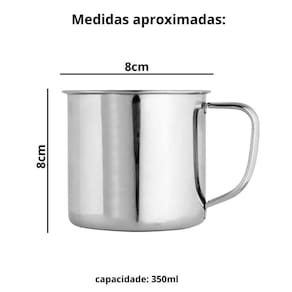 Uma caneca produzida interna e exteriormente de aço inox com estética linda e brilhante.