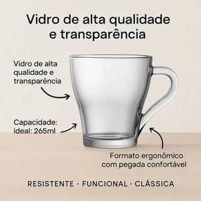 Sirva suas bebidas com o kit de canecas de vidro Wellmix 265 ml, ideal para café, chá, leite e cappuccino. Com 12 unidades, ele facilita a rotina e ajuda a manter a mesa pronta para diferentes momentos do dia. O design moderno com acabamento transparente e formato ergonômico com alça oferece uma pegada mais confortável ao servir bebidas quentes ou geladas. É uma opção prática para uso em casa, no escritório e em reuniões. Fabricadas em vidro, combinam funcionalidade com visual discreto e versátil.