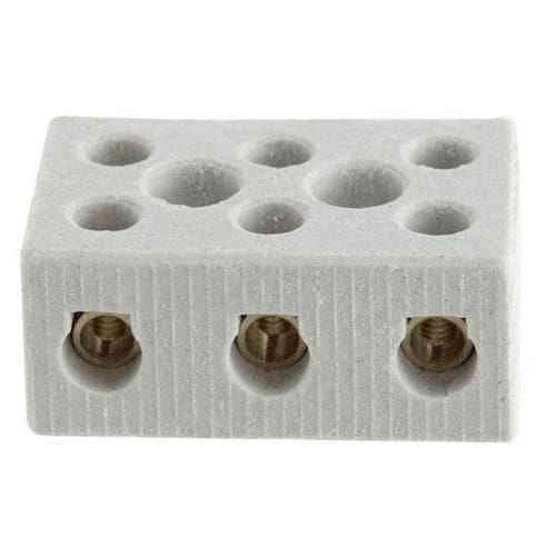 Abaixo descrição do produto: 12 conectores porcelana tripolar 16mm2 30a 600v - fertak - 8205 Kit com 12 unidades Com furo central para fixação em placas, chocadeiras, etc. Fabricado em porcelana/cerâmica com conectores de latão, para fios de até 16mm quadrados de área seccional. Ideais para conexões que exijam resistência à alta temperatura, como, por exemplo, instalações de chuveiros elétricos. Possuem túnel e parafuso em latão inoxidável, garantindo maior segurança às instalações.