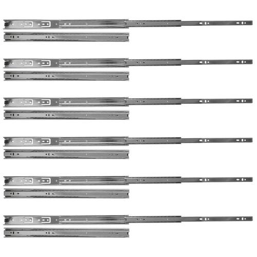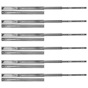 Kit com 12 Corrediças 6 pares Telescópica Trilho 450mm x 35mm 35Kg para Gaveta Rayco A Corrediça telescópica 45cm x 35mm da Rayco é indicada para gavetas de cozinhas, closets, quartos, banheiros, lavanderias, prateleiras retráteis/extensíveis, bases de teclado e mobiliário em geral. O par suporta até 35kg. - Marca: Rayco - Referência: R20532-6X - Acompanha 12 corrediças 6 Pares - Comprimento: 45cm 18 Polegadas - Largura: 35mm - Espessura: 12,1mm - Para uso geral e pesado - Possibilita a abertura total da gaveta com deslizamento suave, preciso e resistente - Corpo em aço galvanizado - Deslizamento através de de aço - Tipo: telescópica - O par suporta até 35kg - Peso: 590 gramas por par - : 90 dias Marca: Não Informado