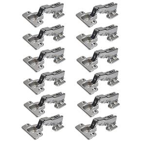 Kit com 12 Dobradiças 35mm Curva para Moveis com Pistão Amortecedor e Calço Slide ON