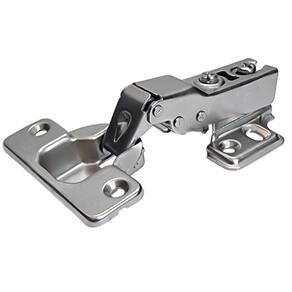 Dobradiça curva com pistão de amortecimento e sistema Slide ON de fixação. Com caneco de 35mm, é a melhor solução para montagem de móveis.
