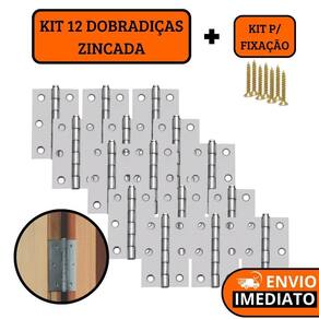 Kit 12 dobradiças zincada para porta de madeira 7,6cm + parafusos para fixação