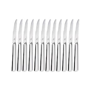 - 12 Facas de Sobremesa (Ponta arredondada): 21cm; tamanho lâmina 10,4 cm e espessura 7,7 mm Especificações: Marca: Hércules;Modelo: Mykonos 4000-006; Garantia: 3 meses;---- Aqui na Casa & Tendência você encontra os melhores utensílios domésticos e tudo que você precisa para sua cozinha ----