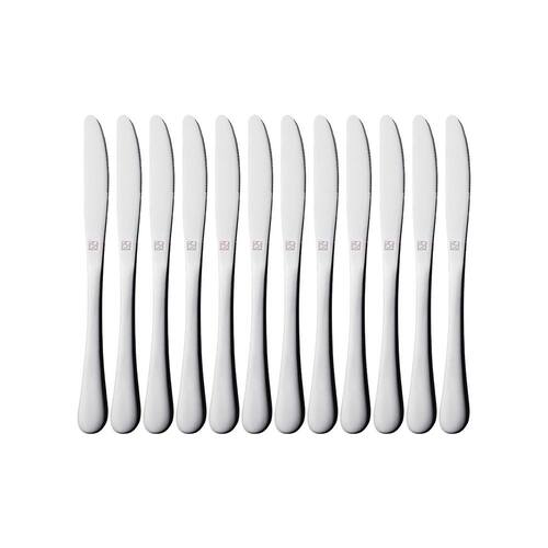 Composição: - 12 Facas de Sobremesa(Ponta arredondada): 21 cm; tamanho lâmina 10cm e espessura 2,5 mm
