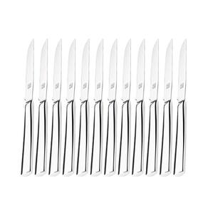 Composição: - 12 Facas de Mesa De churrasco, ponta cortante : 23,2cm; tamanho lâmina 12,5 cm e espessura 8,5 mm
